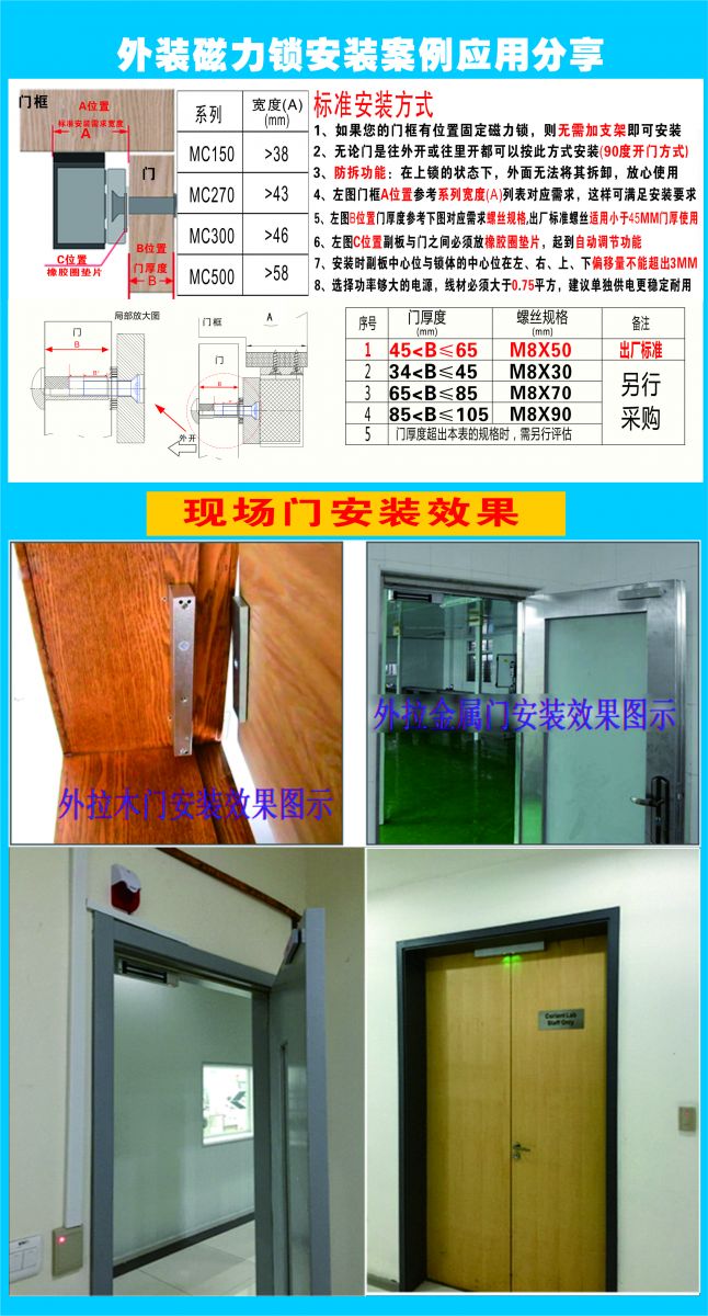 1、安防行業(yè)的智能大廈、辦公大廈、小區(qū)等任何有框門(木門、金屬門、防火門、消防門),包邊玻璃門或未包邊玻璃門安裝
