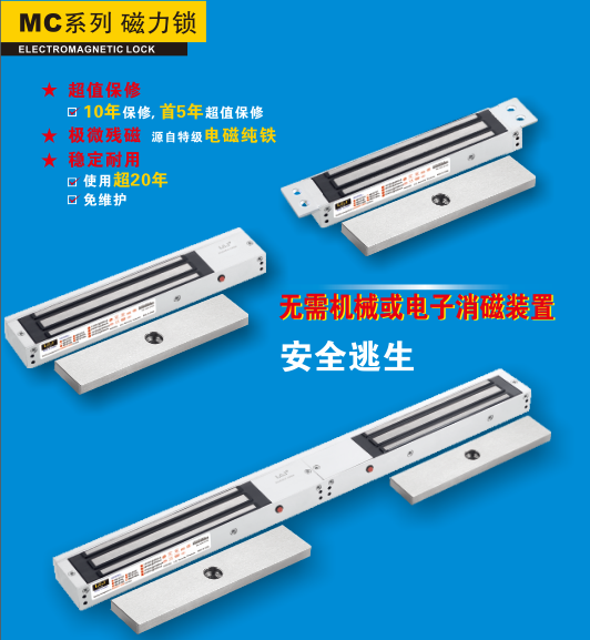 4、無需機(jī)械或電子消磁裝置(斷電開鎖,安全逃生)