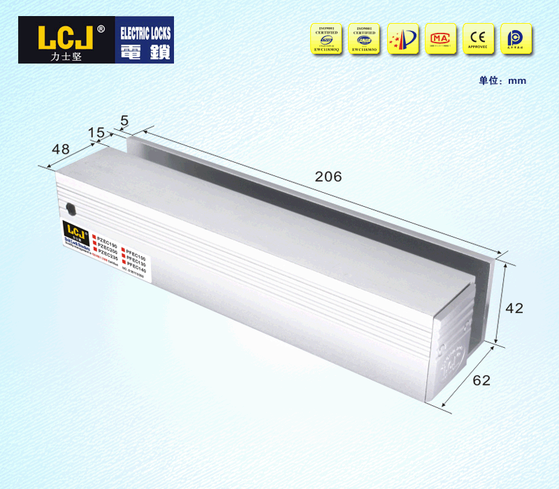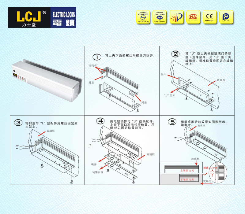 配合電插鎖EC200系列、EC200A系列、EC200B系列、EC200H鎖體,應(yīng)用于8~12mm厚上無(wú)框玻璃門(15mm玻璃特定) |