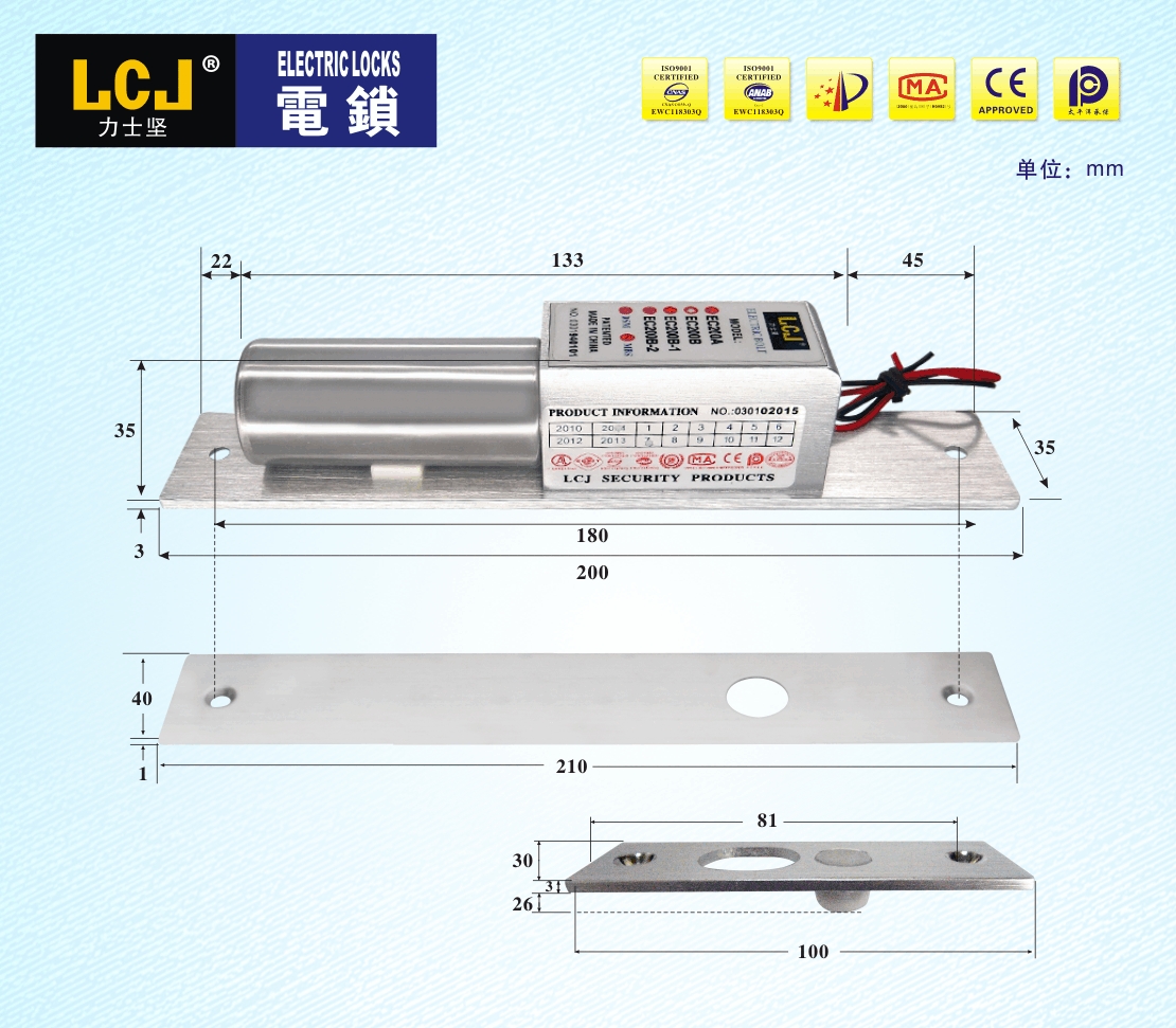 EC電插鎖是按照《電插鎖》標(biāo)準(zhǔn)自主設(shè)計開發(fā),擁有實用新型、外觀等專利。