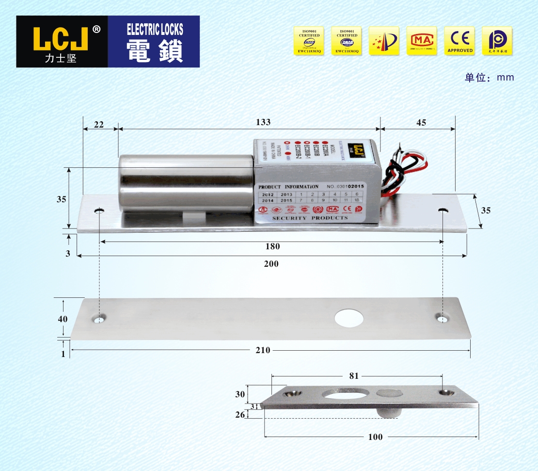EC電插鎖是按照《電插鎖》標(biāo)準(zhǔn)自主設(shè)計(jì)開發(fā),擁有實(shí)用新型、外觀等專利。