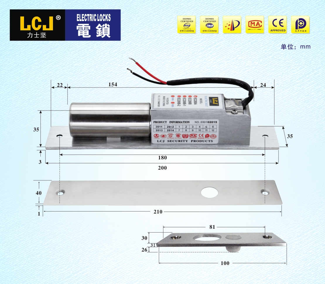 EC電插鎖是按照《電插鎖》標(biāo)準(zhǔn)自主設(shè)計(jì)開發(fā),擁有實(shí)用新型、外觀等專利。